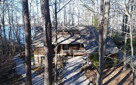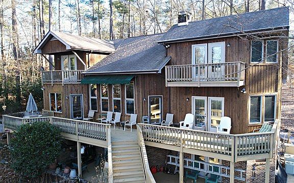 Quality construction on a 1.43 acre main lake lot with full sandy beach!! Open concept floor plan includes kitchen, dining and living areas. Wall of glass lakeside to maximize views. Main floor lakeside master suite has direct deck access. Kitchen has long bar for informal dining plus a HUGE pantry. Main level also includes a 1/2 bath and laundry. Up the beautiful staircase there are 2 additional bedrooms and another full bath......also large walk-in attic for storage. The lower level has a 3rd full bath and a very large undesignated room. There is also over 800 unfinished sq ft. to use as is or finish out to add more rooms or rec area. Beautifully landscaped lot with nice walkway to sandy beach and boathouse. Covered parking area with circular access. OWNER OCCUPIED..please schedule appointment. **********PRICE REDUCED*********