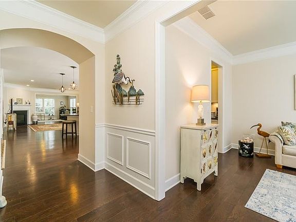 Beautiful open concept one level living in the heart of Woodstock! Hardwoods welcome you in to a modern color palette and light filled spaces throughout. Gorgeous granite and stainless appliances in kitchen with white cabinetry and kitchen island. Thereâs even a wet bar with sink for easy entertaining. The spacious owners suite features tray ceiling, soaking tub, dual vanity, shower, separate water closet and attached walk-in closet.Donât miss the perfect patio and pergola out to the level yard BONUS lawn maintenance is handled by the HOA!