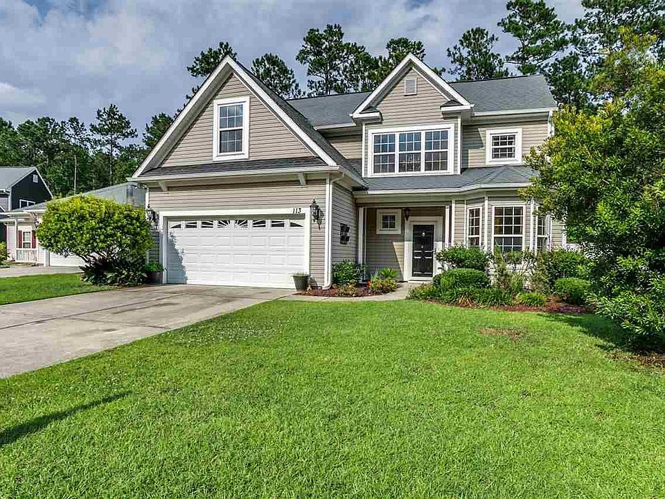 This is ONLY available home in Burcale Commons! This beautiful 4/2.5 bath home is located on a quiet cul de sac and offers a private lot with woods in the back and across the street. This home offers a formal dining room that could easily be used as an office/study or playroom for children. The kitchen offers 42" Maple cabinets with Corian counter tops and a breakfast nook. The great room has a slate-like tile, wood burning fireplace, and a cathedral ceiling with fan. The first floor master has a tray ceiling, a large soaking tub, tiled shower and double vanity. The master suite, great room, breakfast nook, and kitchen all look out to a private fenced lot. The dining room also overlooks woods across the street to the front. A 1/2 bath, laundry room ( washer and dryer are included), and screened porch complete the first level. Upstairs you will find 3 additional bedrooms and a full bath. The back yard has privacy fences along each side and a picket fence along with woods. An extra large patio was added and includes a grilling or storage area to the side of the home. The pool and playground are a short walk down the street. Burcale Commons is located just minutes to Market Commons, Broadway, and of course the ocean!