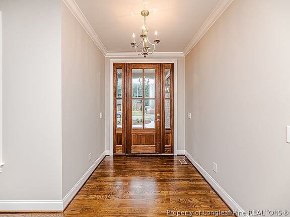 Stunning 8 ft Mahogany front door. Covered front porch. Bright & open floor plan. Main living areas with site finished white oak hardwoods. Spacious kitchen/dining/sunroom. Level 4 Quartz in kitchen & baths. Two master suites, walk-in frameless tile shower. Large laundry room. Finished bonus room. Throughout home, 9 foot smooth ceilings, oversized Pella casement windows, all solid 2 panel doors, upgraded crown molding,5 inch baseboards. Back partially covered deck over looks private backyard. NO yard maintance.