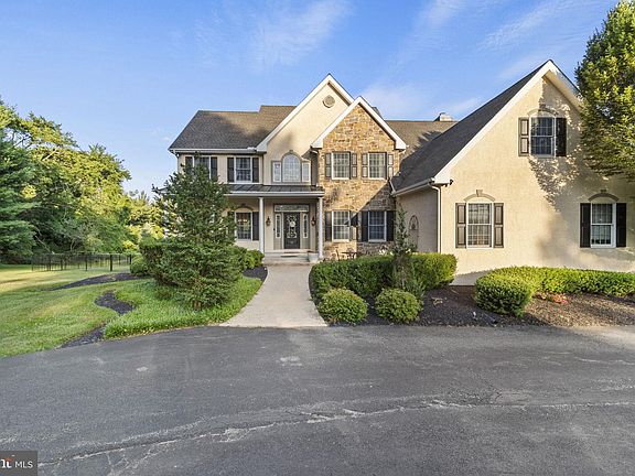 Your private oasis awaits at 113 Round Hill Road; a hidden gem in scintillating Kennett Square! This elegant home boasts 4 sizable bedrooms and 4.5 bathrooms. At first glance, the curb appeal of the stone and stucco exterior draw you into the large front porch, and beautifully ornate glass front door – the perfect greeting to a home. Upon entrance, the house contains polished hardwood floors below your feet and a glistening chandelier crowing the winding stairway. To the right lies a private office and to the left, a spacious seating room that leads to the formal dining room where you can escape to the enclosed porch and enjoy the outside behind gentle screens. The dining space opens up to a gourmet kitchen equipped with custom cabinetry, shining granite countertops, upgraded appliances, and an island with seating. The other side of the kitchen contains a prep sink and additional counter space, a wine rack, and cabinets; more storage space, and tools to create a perfect kitchen experience. The open concept kitchen has a breakfast area near sliding glass doors that lead to a large deck with retractable awning that overlooks the backyard retreat and rolling hills. Beyond the eating area is the expansive Great Room with propane fireplace and custom mantle that soars up to the cathedral ceiling with skylights that flood the room with light. This space is lined with large, two-story windows and an additional stairway to the second floor. The mudroom next to the stairs contains a built-in cubby space and a bench by the doorway to the two-car garage. A small hallway leads to the first of three laundry areas. The laundry locations are on the first, third and and lower levels; while the second floor has a laundry chute conveniently located in the loft. Four bedrooms and three bathrooms are situated on the second floor. Two of the smaller bedrooms have ensuites. The large guest suite can be found right off of the loft area. The Primary Bedroom with en suite provides a seating area and secluded deck for quiet moments, yoga, or meditation. The ensuite has a double vanity, soaking tub, and a separate shower. Private stairs lead to a third floor dressing room lit with stunning chandeliers and equipped with laundry facilities and a prep sink. The lower level has a full kitchen, bonus room, full bathroom, exercise room, and theater area with surround sound. The walk-out sliding doors lead out to the breathtaking backyard space with nine areas of entertainment. Within the core of this backyard mecca is a heated in-ground pool that instantly captivates the viewer with its sun shelf, diving rock, and flowing waterfall feature. Along the side, the newly redone patio offers additional space for seating and hosting. Guests can enjoy the hot tub or utilize the outdoor shower. Near the pool, the tiki bar provides shelving, a prep sink, mounted TV, and an extra refrigerator. To complete this at-home paradise, the backyard is outfitted with a shed, basketball court, and hardscaped fire pit area. In addition to these amenities, this great escape is located close to the vibrant borough of Kennett, Longwood Gardens, restaurants, shopping, transportation, and is within the Kennett Consolidated School District. This is the lifestyle you deserve; come meet your future home. * * * This home is Active/Under Contract - Allowing Showings on Saturday * * * Backup Offers Accepted.