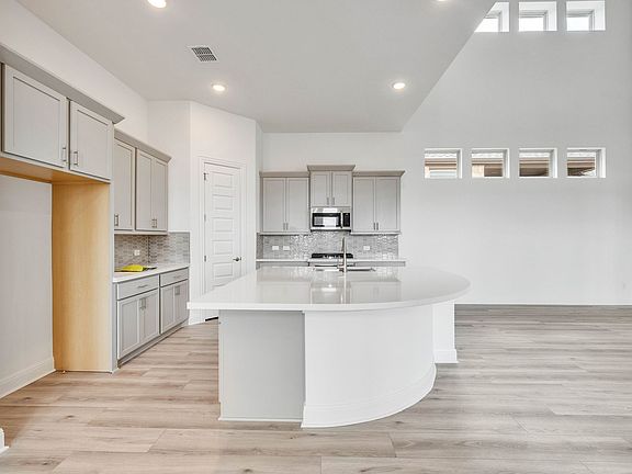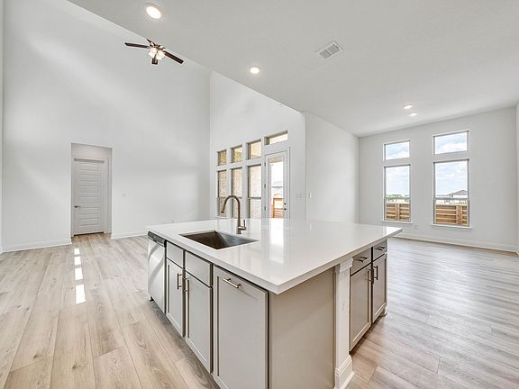 Discover the two-story Orwell II floor plan, a spacious and elegant home designed for both everyday comfort and stylish entertaining. This thoughtfully crafted layout includes four bedrooms and three full bathrooms, offering plenty of space for families and guests. The heart of the home is the two-story family room, featuring soaring ceilings and large windows that fill the space with natural light. The kitchen is a true standout, equipped with stainless steel appliances and an enlarged quarter-round island that provides additional seating and prep space that is perfect for gatherings. Throughout the main level, you'll find 10-foot ceilings and 8-foot interior doors, adding to the home's open and luxurious feel. The primary suite offers two separate closets and an expanded bathroom that includes both a large shower and a garden tub for added relaxation. A spacious game room upstairs provides additional flexibility for entertainment or downtime. Outside, a full sprinkler system and fresh sod in both the front and rear yards make lawn care easy and efficient. As the only premier builder offering expansive interiors and low-maintenance exteriors, this home combines quality, comfort, and convenience. Available July 2025. For details on available finishes and upgrade options, please contact the sales team.