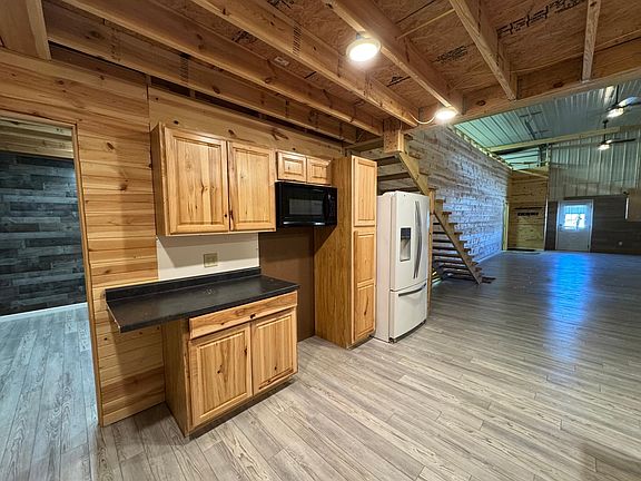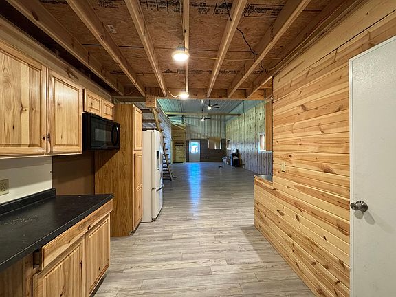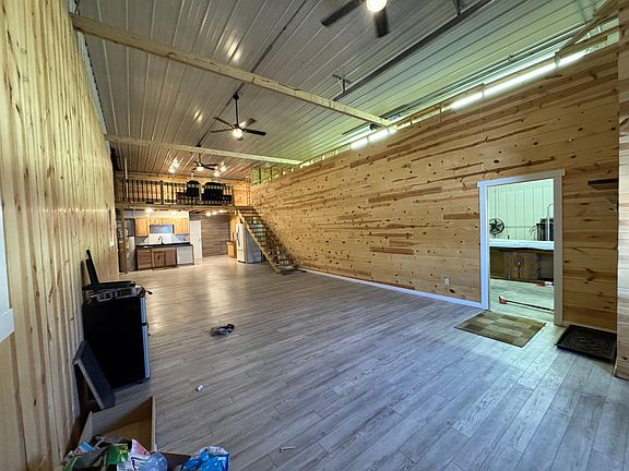This unique Morton Building offers a blend of functionality and comfort with finished living space, including a private bedroom and a loft area. The open-concept kitchen and spacious living area provide a welcoming atmosphere, perfect for everyday living or a weekend retreat. The heated garage features impressive 14-foot high doors, ideal for large vehicles, equipment, or storage needs. Heat source seems to be blowing on the ceiling. A concrete driveway adds convenience and durability. Whether you're looking for a full-time residence, a workshop, or a recreational getaway, this property offers endless possibilities. This Property is being sold “AS IS”.