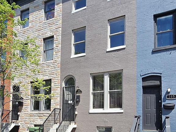 Located in Union Square this completely renovated 4 bedroom, 3.5 bath townhome delivers plenty of living space on 4 finished levels and is filled upgrades and designer finishes! High ceilings, warm hardwood floors and on trend designer paint throughout, upgraded recessed lighting, contemporary ceiling fans, sliding barn doors, a renovated kitchen and beautifully remodeled baths create instant move-in appeal! ****** Rich hardwood flooring welcomes you into the light filled living room featuring soft designer paint, a contemporary ceiling fan, and a custom tiled accent wall. The renovated kitchen is sure to please the modern chef with sleek cabinetry with custom handles, warm butcher block countertops, and stainless steel appliances including a gas range, while designer tile backsplash and wall adds the finishing touch. Here, a glass door opens to the rear porch and spacious fenced level backyard, perfect for indoor and outdoor living! Back inside, a custom barn door opens to the chic powder room. ****** Hardwoods continue upstairs and into the primary suite that is your own private retreat featuring a bedroom area and a separate sitting room, both with recessed lighting and contemporary lighted ceiling fans, and an ensuite bath boasting a dual sink vanity, sleek fixtures, separate soaking tub, and frameless glass enclosed shower, all enhanced by hand laid tile walls and flooring! The uppermost level features a custom built-in closet in the hall and two light filled bedrooms, each with hardwood flooring, that share access to the remodeled Jack and Jill bath. ****** The finished lower level family room with LVP flooring, a contemporary lighted ceiling fan, and brick accent wall provides space for games, media, and relaxation, while a versatile 4th bedroom and an additional renovated full bath adds convenience. All this in a great location, close to I-95 and Inner Harbor, walk to Camden Yards and more. Minutes to multiple subway and MARC stations and one block to Union Square Park.