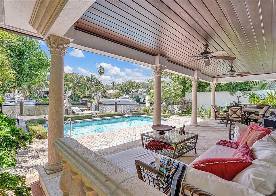 Welcome to 113 S Gordon Rd, a beautifully remodeled two-story Mediterranean residence blending classic charm with modern appeal.The home spans approximately 2,429 sq ft, offering 3 spacious bedrooms (two on the main level, one upstairs) and 3 full bathrooms perfectly designed for privacy and comfort. A grand living room features an elegant wall of French doors and windows, flooding the space with natural light while providing stunning views of the pool, canal, and private boat dock Rich flooring options including marble, parquet, and carpet complement architectural touches like French doors, first-floor entry, a formal dining area, and a built-in bar A cozy family room adds a functional space for relaxation or entertainment. Dive into your in-ground pool, or set sail from your private deeded dock with boat lift, offering ocean access through a canal with no fixed bridges perfect for boating enthusiasts.