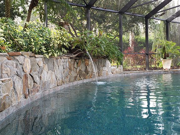 - Pool Features: Screened, Concrete, Heated - Solar, Inground