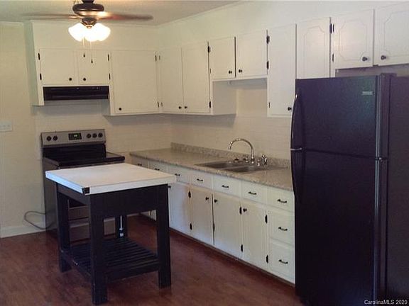 Nice Brick ranch in Polkville city limits, 2 bedrooms, 1 bath, office/study, laminate HW floors, double pane/storm windows, newer range and refrigerator, fireplace, metal roof, Heat pump 2019, single garage, large fenced in backyard, wired storage building.