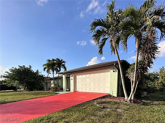 Wall to wall sliders overlooking the pool, plus there is an outdoor pool shower. Yard has many flowering shrubs along with banana trees and irrigation for your lawn. Super coveted SE Cape location; 1/2 mile to Cape Coral Parkway! Easily Uber to shops, pubs, restaurants, grocery, doctors, and more. Or take a quick ride to Fort Myers Beach, Sanibel, Pine Island, Punta Gorda, or Fort Myers Airports. Schedule a viewing and see how this home can be your perfect getaway. Move in to start your Florida dream or use for an Airbnb or investment property! This listing is priced low enough to factor in the pool wall removal and other repairs, so no low ball offers. Needs updating inside, and is priced accordingly.