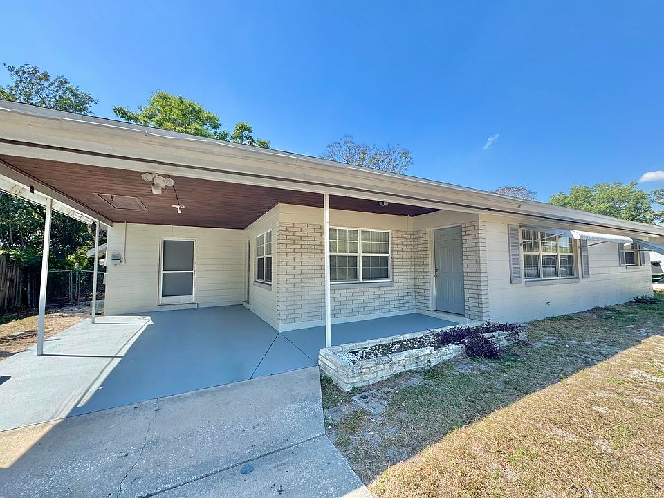 Located in the great Southeast Winter Haven, this clean 2 bedroom 1 bath home is ready for immediate move-in. Featuring durable terrazzo flooring throughout a comfortable living room, a small eat-in kitchen, and a versatile family room. The family room provides access to a spacious 10x18 screened-in patio and a large fenced backyard, perfect for outdoor enjoyment. A separate storage room with washer/dryer hookup is conveniently located off the carport. Situated near shopping centers, Publix, Walmart, and Legoland, this home provides easy access to everyday conveniences and entertainment.