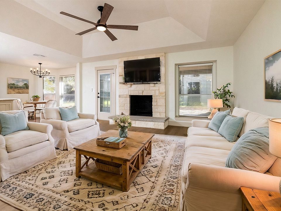 - Built-in Features, Decorative/Designer Lighting Fixtures, Granite Counters, Kitchen Island, Open Floorplan, Cable TV, Vaulted Ceiling(s), Natural Woodwork