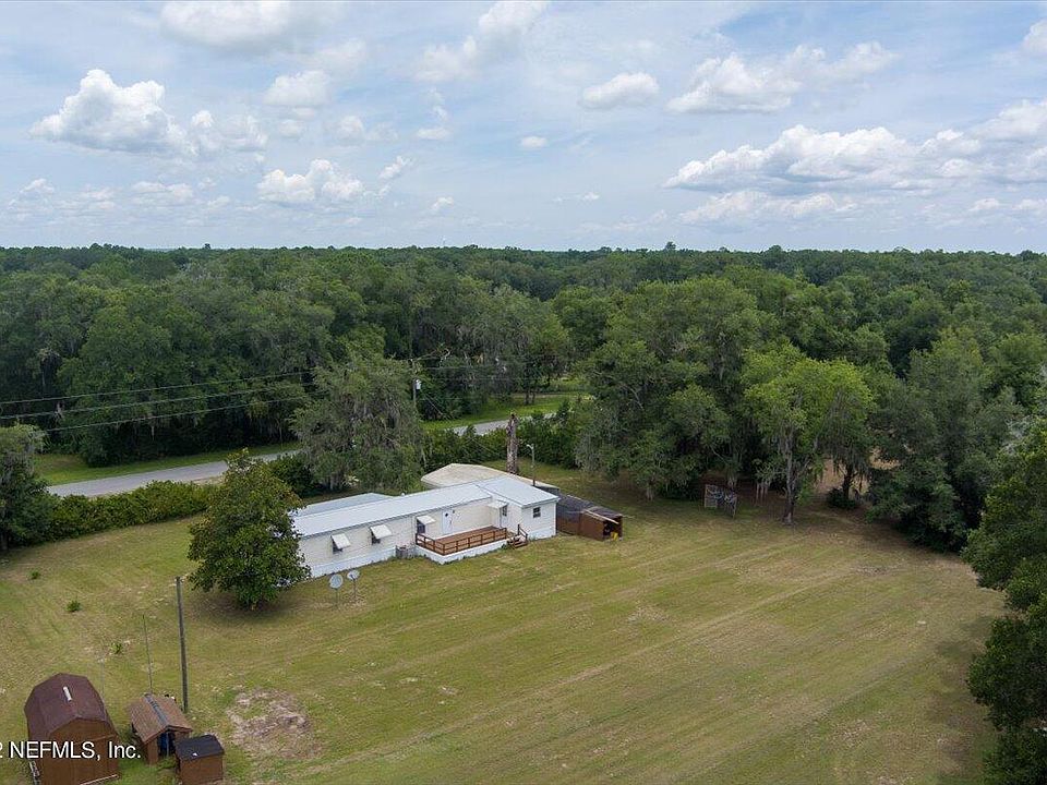 Looking for a little land with your home? Look no further, the private lot is super big at almost two acres and has 2 nice sheds for storage. The covered carport offers concrete parking for 2 cars plus. There is a screen porch on the front and a large open deck on the back. Don't miss the extra room off the back deck that is perfect for an office or craft/hobby room . The inside is freshly painted and ready to move in! Great location close to the St Johns river and only a short trip to the beaches.