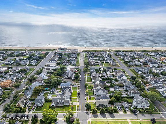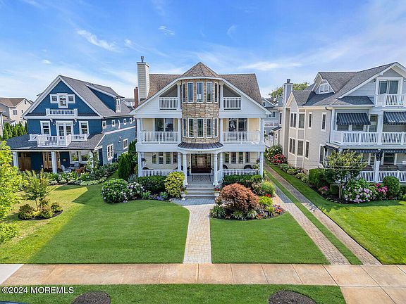 Happy summers for years to come at this gracious 5 bedroom 3.5 bath home just 1.5 blocks to Spring Lake's south end beach & pavilion. LOOKING FOR A POOL? MAKE SOME PAVER CHANGES FOR A DIPPING POOL. The welcoming front porch is a perfect spot to sip your morning coffee. This 3 level home built in 2006 features radiant heat, high ceilings, hardwd floors, crown molding 2 fireplaces & an open floorplan perfect for holidays, parties & fun. The gourmet kitchen is open to the family rm and boasts an oversized 12ft+ island, Viking professional appliances w/8 burner stove, 2 dishwashers, wine fridge . Enjoy a quiet moment or the ocean breeze from any of the 6 private balconies. The 5 well appointed bedrms include a primary suite w/large bath spacious WIC & a private balcony. the 3rd f open space can be used for guests, a playroom, gym and boasts storage space a 4 balconies and a full bath w/ jacuzzi. There is a detached 2 car garage, great for storing your cars, toys and golf cart. Perfectly located for walks to the beach, the lake and Devine Park, downtown Spring Lake, ice cream and even the Parker House. This is such a wonderful opportunity to make your Spring Lake dreams come true. See our features list and floorplans for more information.