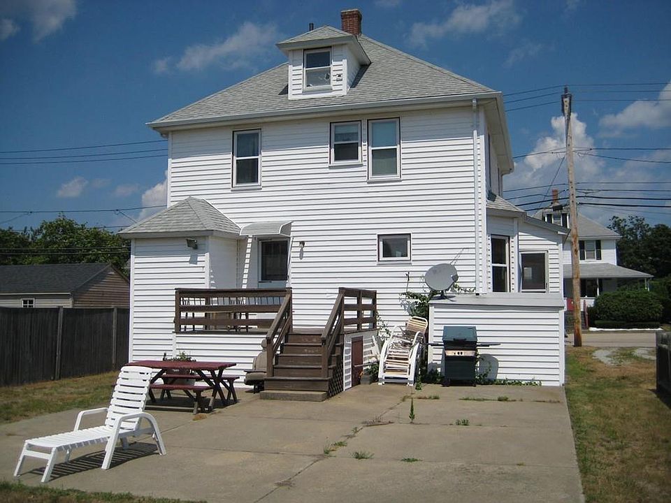 Large, 1,650 SF, four bedroom home centrally located. Convenient to beach, shopping, and restaurants. All four bedrooms are in corner locations of the house and receive natural light from two sides. First floor has an open floor plan with a centerpiece brick fireplace, and rear kitchen with direct access to deck and large patio. Spacious front porch and rear deck. Pull down staircase to large open attic with two windows. Potential exists to dormer and create living space with ocean views. Property does need updating and some system improvements, but its location and size support such an investment.