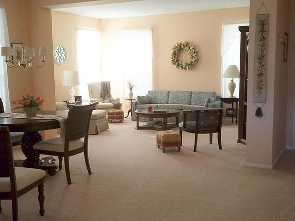 Living/Dining huge open space. Kitchen tucked away with bow window. Private patio on side of home. Nicely located to give you landscaped views.Immaculately kept. Furnace and a/c in 2010, Driveway in 2012. Kitchen tile in 2015. New washer in 2014. Room in garage for storage on both sides!!! This home is lovely.