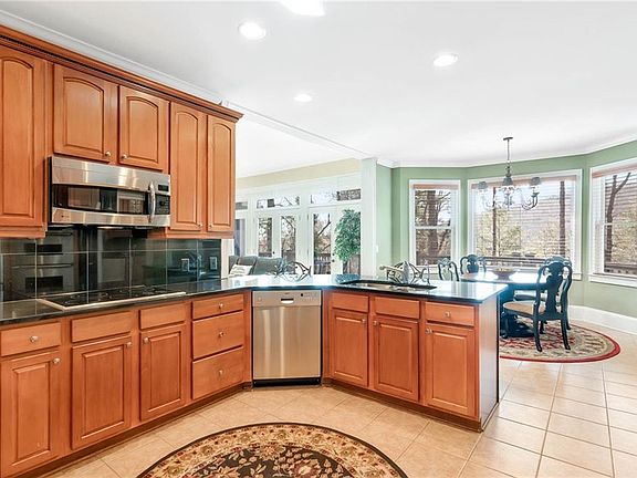 - Kitchen Features: Breakfast Bar, Cabinets Stain, View to Family Room, Stone Counters, Breakfast Room
