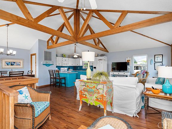 Come see this super cute and clean home in Colony by the Sea! Its so easy to love this one...easy to enjoy, easy to maintain, and easy to rent! The top floor has a colorful kitchen and a great open concept living room. The cathedral ceilings have beautiful beams and there is a south facing sun deck too! On the mid floor there are 4 bedrooms and 2 baths all with great updates and finishes. On the ground floor there is a great hot tub and lounge area outside, an outside shower, storage for toys, tools and a laundry. The vinyl shakes, vinyl windows and natural landscaping will give you more time to enjoy the beach and your friends! The location next to the common area is perfect for privacy . There is plenty of room for a pool on this 15000 square foot lot. There are only 14 homes in Sea Colony and all have access to the beach, the sound and the amenities of Colony by the Sea—basketball courts, tennis and a large oceanfront pool!