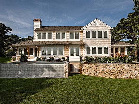 Designed by the award-winning architectural firm Polhemus Savery DaSilva, this waterfront masterpiece has been refined with elevated finishes by renowned designer Lisa Tharp. Set on Crows Pond, the open-concept main level showcases breathtaking water views from the stunning chef's kitchen and great room with open dining area, all seamlessly flowing to a screened porch, expansive stone patio, infinity pool, and deck—a front-row seat to 4th of July fireworks, Coffered ceilings, custom built-ins, monochrome palettes, and striking light fixtures add to the home's sophisticated aesthetic. A private first-floor guest suite offers a serene retreat with its own patio and spa-like bath, while the upper level features a primary suite, a water-view bedroom, a charming children's room, and a central loft. The lower level is designed for entertaining, complete with a bunk room, full bath, game room, media area, and direct access to the outdoor shower. Showings start Sunday, March 9th.