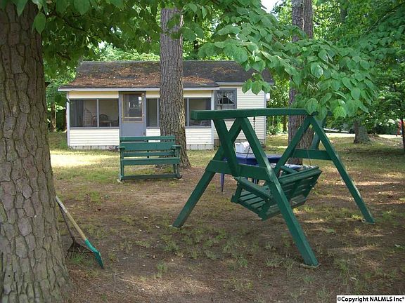 Nice little cabin on a very nice lot near the water in Langston. The water access is at the end of the street where it is grown up in weeds, it has not been maintained for years. This is a one room cabin with a separate bathroom and laundry room and a comfortable screened in front porch. Great neighborhood in the cul de sac on Shady Lane. The shared water access is just past the shed at the end of the road and has not been maintained. Boathouse may be built with TVA approval. The water access is NOT across the street, that is private property.