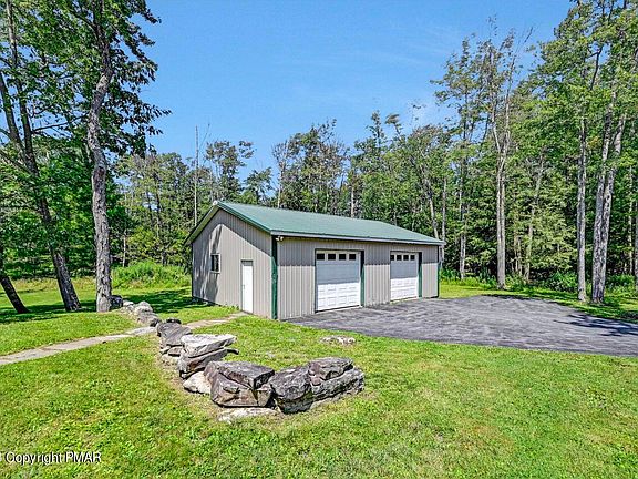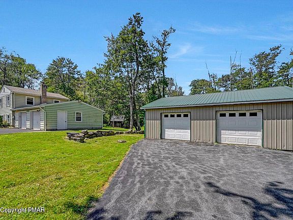 No community ! No development means no dues !! Split level home on over 2 acres in Tobyhanna. Needs some updating and TLC. Detach pole barn garage great for car enthusiast or a woodworker along with another 2 car attach garage to the home. Flat lot in a quiet area. The consist of 3 bedrooms with hardwood floors, 1 1/2 baths, eat in kitchen, living room wiith fireplace, dining room, large family room with gas stove. Large deck for entertaining. Home is being sold as is. Worth a look !!