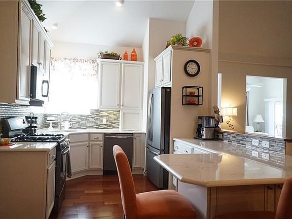 Impeccable and gorgeous condo in Leslie Farms. 3 bedroom, 3 full bath Hampton Model by Pitell Homes. Open and airy featuring Brazilian Cherry Hardwood floors throughout entertaining area on first floor, fully equipped kitchen with 42" glazed, off-white cabinetry, quartz countertops and slate appliances, formal dining room opens to kitchen, great room with vaulted ceilings, den leads to cement patio, first floor master offers walk-in closet and full bath with double sinks and ceramic tile shower. Second floor is perfect for guests, offering a full bath, oversized bedroom could accomodate a sitting area plus tons of additional storage. Two car attached garage, interior fire suppression and security system. Located in Leslie Farms just minutes off of Rt. 68, convenient to I-79, Cranberry and Butler.