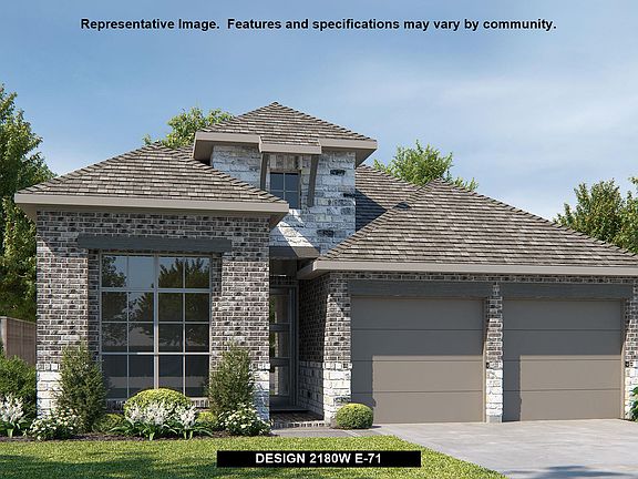 Extended entry with 12-foot ceiling leads to open kitchen, dining area and family room with 10-foot ceilings throughout. Kitchen features walk-in pantry, generous counter space and inviting island with built-in seating space. Dining area features wall of windows. Family room features wall of windows. Primary suite with 10-foot ceiling and wall of windows. Double doors lead to primary bath with dual vanities, garden tub, separate glass-enclosed shower and large walk-in closet with access to utility room. A guest suite with private bath adds to this one-story design. Covered backyard patio. Mud room off two-car garage.