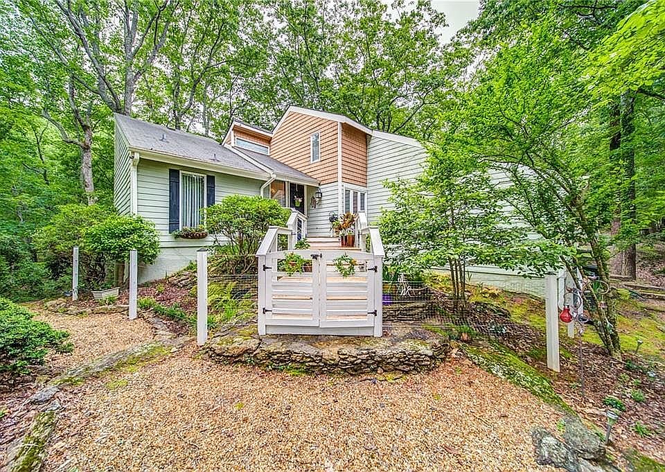 Welcome to your sweet escape where you can immerse yourself in nature! This home has so much to offer. DOUBLE lot gives you tons of privacy totaling 1.17 acres. From all 3 levels you will feel like you are in a tree house surrounded by lush landscaping. The Master bedroom has soaring ceilings, Juliet bathroom and a private balcony. Perfect space for entertaining on the main level with wood burning fireplace and wet bar. On the terrace level you will find bedroom, full bath and large rec space with sliding glass doors that lead to deck and fenced in area. Front and rear driveways. The driveway at the rear is level and leads into a 2 car garage. The front drive is circular for easy entry and exit. ***LAKE ARROWHEAD is a gated resort style community that offers 540-acre lake surrounded by mountains, pristine wilderness and trails, and championship golf. With nearly 20 miles of magnificent shoreline, Lake Arrowhead's crystal clear waters boast depths over 80 feet. The lake is stream-fed and always remains at a constant level. Lake Arrowhead is ranked as one of the cleanest lakes in the state. The championship Highlands Course is considered one of the best golf courses in Georgia.