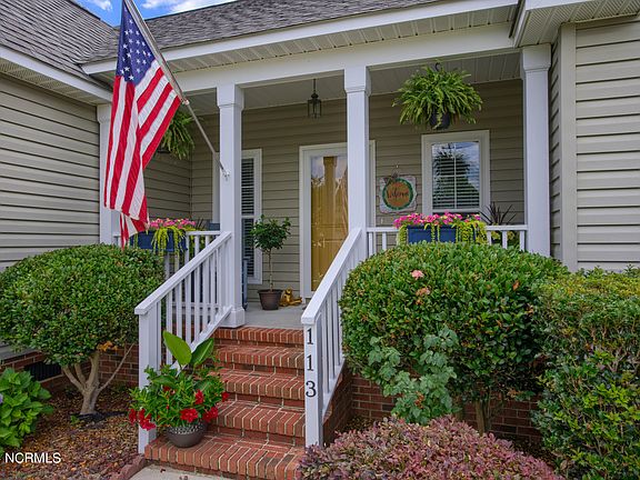 Welcome home to 113 Sidney Lane, located in the highly sought-after Williamsburg Plantation subdivision, where every detail invites comfort and relaxation. This charming residence epitomizes the allure of single-level living, featuring a spacious 3-bedroom, 2-bathroom ranch-style layout that exudes warmth and functionality. Upon arrival, the welcoming covered porch sets the stage for a sense of belonging. Step through the front door into an open living room adorned with a cozy gas fireplace, perfect for gatherings or quiet evenings curled up with a book. To the right, a versatile formal dining room, currently utilized as a home office, offers flexibility. The adjacent kitchen presents with abundant cabinetry and stylish black stainless steel appliances. Conveniently positioned off the kitchen, the primary bedroom suite provides a serene retreat complete with ample light and an en-suite bathroom. The well-designed split bedroom plan places the additional two spacious bedrooms and full bathroom on the opposite side of the home, affording privacy and comfort for family or guests. Each room is thoughtfully appointed to accommodate varying lifestyles and preferences. Outside, the allure continues with a spacious back deck, an ideal spot to savor morning coffee or unwind with a nightcap under the stars. The tranquil setting encourages outdoor relaxation and entertaining, making it a cherished extension of the home's interior living space. Located in a desirable neighborhood known for its community spirit and proximity to amenities, 113 Sidney Lane offers not just a residence, but a lifestyle of comfort and convenience. Whether enjoying the peaceful solitude of home or exploring the vibrant surroundings, this property embodies the perfect blend of modern living and timeless appeal.