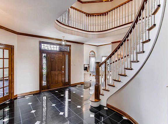 When you Pull up to this stately White Two story Home w/ circular drive you will be impressed by it's timeless character and located right on water. Upon entering the elegant foyer w/ Grand Curved Staircase & Black Granite Floors you know you are in a special home. The Formal Living & Dining Room are adjacent for easy entertaining.This home is Family Friendly w/ party size great room, tall beamed ceilings, Fireplace & Wet Bar adjacent to the Kitchen. Both rooms have peaceful water views! The Kitchen features Cherry Cabinetry & Corian Counters. There is a door that leads to the newly refinished Maintenance free deck. The main floor also has a large 5th bedroom & Full Bath perfect for Related Living! 2nd level is a Large Master Suite plus 3 More bedrooms & 2 baths Their is also a full fin. Walk out basement w/ 2nd Kitchen, Full Bath & Rec Room area w/ Fireplace. Motivated seller reduced the price $80,000 for cosmetic updates needed, in very good condition just outdated. This is a steal!