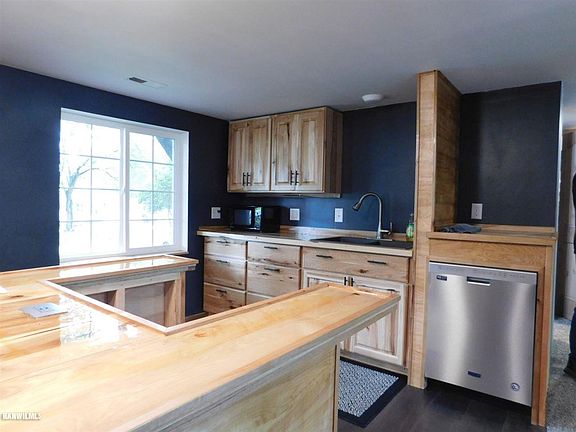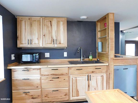 Neat and tidy best describes this totally renovated home. Seller took the walls down to the studs and started fresh. The kitchen has all new Bader cabinets, new doors and trim and an island ready for a gas stove top/range. A compact refrigerator would fit nicely above the dishwasher, or a standalone along the wall by the porch. Living room features a wood fireplace and patio doors to access the private, partially fenced back yard and storage shed. Shingles and all the windows except 2 were replaced, subzero insulation sprayed throughout to ensure cost effective utilities and tankless hot water heater, so you only pay for hot water when you need it. Carpet replaced in living room as well as a path to the bedroom and bath to soften the trek for your feet. Laundry hookups are in the mechanical room. Furnace and duct work recently cleaned. Second bedroom or office is ready for flooring of your choice. You are sure to enjoy relaxing on the covered front porch. Don't wait, better call today to be first in line to view this property.