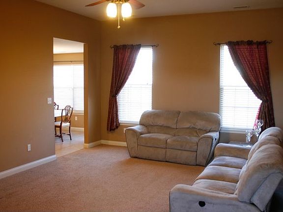 Tiled entryway, which features gorgeous 18'' tile, Great kitchen with maple cabinets, breakfast bar, pantry, 18'' ceramic tile floors, corner sink, tall ceilings in the living room, built in media center and laminate flooring in living room, plantation blinds throughout, laundry room with built-ins, master with private bath and linen closet and spacious walk-in closet, large entry way closet and extra linen closet, large rear patio, full privacy fence in the backyard and pull down stairs to storage in garage.