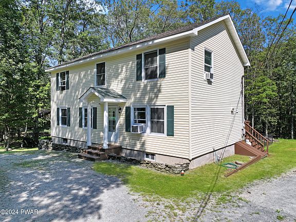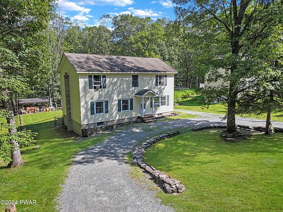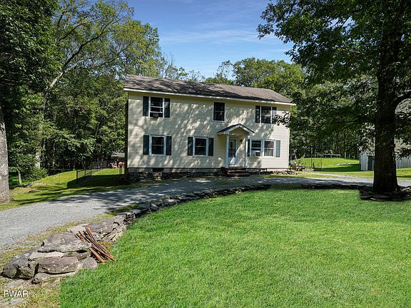 REDUCTION IN PRICE!!! Immaculate 4 Bed, 3 Bath Home on a double lot of 1.60 acres in Wallenpaupack school district! This stunning home backs up to 9 acres of green space, offering a serene and private setting. Inside, you'll find a granite kitchen, stainless steel appliances, hardwood floors, and a cozy 4-season room with a knotty-pine ceiling and wood-burning stove. The first floor includes a full bath, family room, and living room. Upstairs, a spacious master suite with an attached bath, plus three more bedrooms and another full bath. Unfinished basement provides tons of options! Enjoy the fenced backyard, deck, fire-pit, garden and wood shed. Low taxes and proximity to Lake Wallenpaupack, Hawley, and all the area's attractions, including wineries, hiking, skiing, and more, make this a must-see! The community features lakes, pools, a clubhouse, fitness center, courts, and year-round social events. Secure, well-maintained, and ready for you to move in!