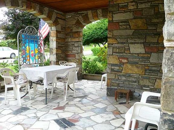 Spacious stone home with old world charm, Italian style travertine marble LBFP, dining room, living room & entry features hardwood flooring, kitchen with snack bar,8X10 sitting area adjacent to master bedroom, lower level gameroom & 2nd bath, enjoy the front outdoor seating area with marble flooring and a rear covered patio off the dining room, good storage space, sliding glass door & bedroom windows replace 2012, living room windows replaced 2014,roof replace 2008.