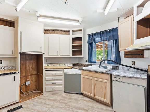 Opportunity knocks with this fixer-upper! This manufactured home sits on its very own lot and offers endless potential for the right buyer. This 2 bedroom & 2 bathroom home sits on a spacious corner lot with a fenced yard, perfect for privacy or pets, and a detached garage for additional storage or workspace. Enjoy outdoor living on the solid covered deck, providing a great space to relax and entertain. While the home needs extensive repairs and updates, it presents a blank canvas for an investor or someone with a vision, this property is a great opportunity to build equity.Bring your tools, creativity, and vision to transform this diamond in the rough into something special. Don’t miss out on this chance to own a property with so much potential! Sold as-is.