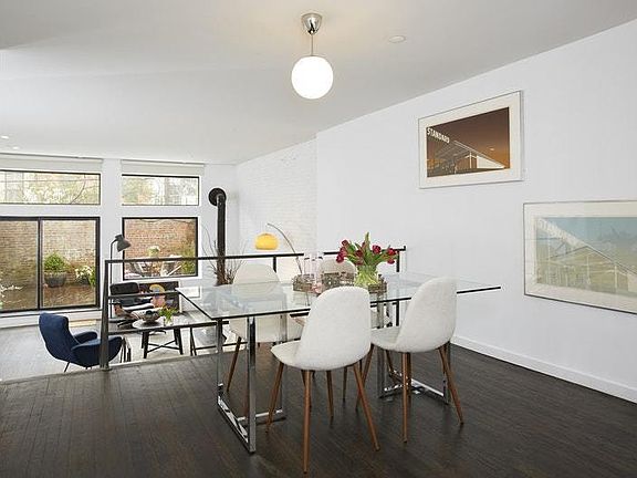 Carriage House Loft A one of a kind Loft which offers the lucky owner comfortable living and all year-round enjoyment. Watch the snow fall in the back yard while curling up next to the wood burning fireplace in the winters, or spend a hot summer evening in the garden with friends and cool off before dinner in the centrally air conditioned airy Loft living space. The Coop Loft is in the Carriage House of the Sterling Atrium which is serenely set on a charming tree lined Park Slope block. Upon entering the home, you will be immediately impressed by the clean lines, high ceilings and exposed brick walls. Laid out as a triplex, the upper level of the Loft is the open kitchen dining space with a half bath and a walk-in-closet. The kitchen is well appointment with stainless steel appliances including Smeg oven, range and hood. A few steps down from the dining area and you are on the main floor of the Loft which has soaring ceilings creating an exceptionally voluminous space. Slide open the glass door to head outside to the private back yard featuring a wood deck, water line and built in lighting. The master suite is spacious, including a home office / dressing area, a walk-in-closet and en suite master bathroom which abuts the washer dryer / HVAC utility room. The Loft is wired for entertainment, in mint condition and ready for your enjoyment! The Sterling Airtium is located in the vibrant northeastern corner of Park Slope. Close proximity to the 2,3,4,B,Q trains, Prospect Park, great restaurants, farmers market, schools etc. Contact the listing agent, Peter Riolo, for additional information, images, floor-plan and viewings. Please note the building is pet friendly, allows for pied-a-terre use and is self managed.