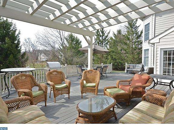 Located in sought-after Ettl Farm, this stone front colonial has great curb appeal! Raised up from the road and showcasing custom stone walls accenting great gardens and mature trees, a handsome paver stone driveway with a 3 car side entry garage offers another stone wall that frames your invite to the backyard which boasts a deck and pergola overlooking a flat yard backing to open space. Inside is a two-story entry with a private study on the right and formal front to back living and dining rooms on the left. A sunken conservatory with a vaulted ceiling and three walls of windows and transoms above is accessed from the living room. The kitchen is light and airy with white cabinets, granite counters, center island with a breakfast bar, desk space, a Sub-zero refrigerator, Miele dishwasher and double wall ovens. The breakfast room with vaulted ceiling and skylight has a single French door leading to the rear deck and pergola for summer fun. The kitchen opens to a two-story family room with a full wall of windows that lets the sunshine in and warms the look of the floor-to-ceiling stone fireplace, a back stair case leads to the upper level. A first floor mudroom and laundry room off the 3 car garage completes the main level. Upstairs has a master bedroom, with a sitting room, huge walk-in closet and master bath. Three more bedrooms share a divided full bath that accesses one bedroom and offers a separate sink room to accommodate dual usage. The basement is partially finished (walls and carpeting only) with the entire second half of the basement being used for storage. Perfect location for proximity to the Private Schools of Princeton, (only this location of Ettl Farm buses to Johnson Park Elementary). Hardwood floors throughout all living and bedroom areas-closing July 1st or later.