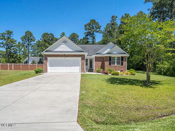 Looking for a move-in ready home with no HOA? Look no further! This gorgeous single-story abode boasts 3 bedrooms, 2 baths, and a 2-car garage all nestled on a sprawling 0.45 acre lot. The fully equipped kitchen with stainless steel appliances (including the fridge) opens up to a cozy dining area, while the conveniently located laundry room ensures peaceful slumber without the noise. The inviting living room features vaulted ceilings, wood flooring, and a gas fireplace for those chilly nights. The luxurious master suite offers a secluded retreat complete with an ensuite bath featuring dual vanities, a soaker tub, stand-up shower, and a spacious walk-in closet. Two additional bedrooms share a bath, and all the bedrooms have brand new carpet. Step outside to enjoy the partially covered back deck or fire up the grill on the paver patio. With a shed to store all your yard tools and garden spots for planting, you'll have everything you need to create your own outdoor oasis. Conveniently located near Topsail Island beaches, schools, and military bases, this gem won't last long. Call a Realtor today for more information!