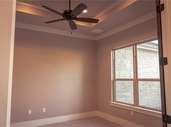 The Ridge at Cross Creek is a one acre homesite community with homes built by Clear Rock Homes. This floor plan offers an open concept, lots of natural light, spacious rooms and a large covered patio with an outdoor fireplace. Each bedroom has a walk in closet and two of those bedrooms share a Jack and Jill bathroom. There is a dedicated office with French doors and a game room or flex area with storage. The utility room is just off the garage hallway and has access to the master bedroom closet.
