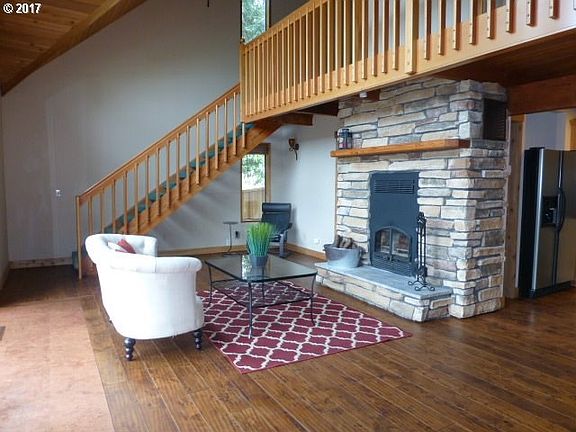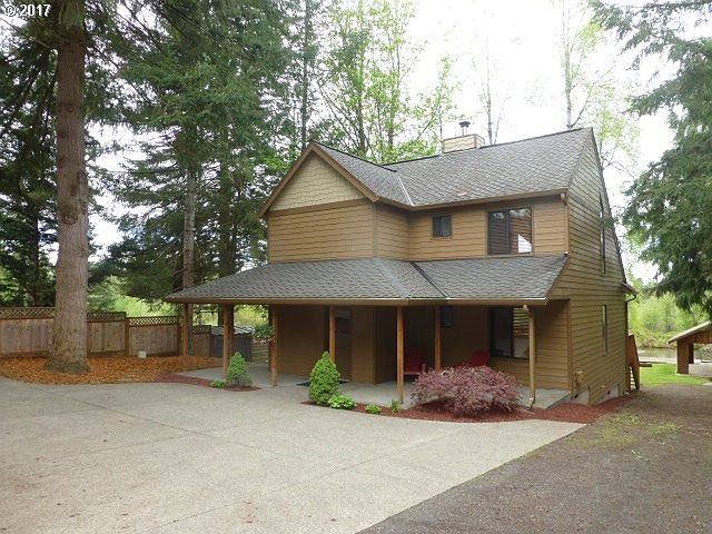 Picture this! Chalet 2-story home, with gorgeous hardwood/cork/tile flooring, hickory cabinets, granite countertops, large picturesque windows that opens to a deck for entertaining with access to Silver Lake, a fire pit, a dock to your very own covered boat moorage, all on half an acre. 2 beds 2 bath close to 1500 sq. ft., fully fenced with a gate entrance surrounded by nature, ready to move in now! Call now for your personal tour!
