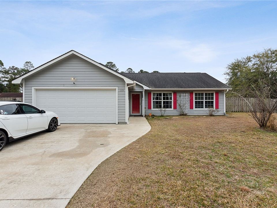 Back on the Market No Fault of Seller! Check out this 4 bedroom, 2 bath home located in The Meadows. This home offers 1534 sqft of a semi open split floor plan, vaulted ceilings, EVP flooring throughout the living area and cozy carpet in the bedrooms. The Primary suite provides a separate shower, soaking tub and a walk-in closet. For those beautiful SE Georgia days and nights sit out on the patio of the fully fenced back yard. NO HOA.