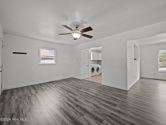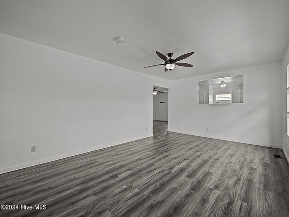 Welcome to this beautifully updated home, just a 10-minute drive to Camp Lejeune! With recent upgrades that include a new roof, HVAC, driveway, flooring, kitchen appliances, cabinets, and fixtures, this home is truly move-in ready. Step inside a cozy living room that seamlessly flows into a formal dining area, creating an ideal layout for gatherings. The formal dining room opens to an updated kitchen featuring modern finishes and a pass-through window to the living room, making it easy to entertain while cooking. This layout offers both connectivity and charm, perfect for enjoying family dinners or hosting friends. The primary suite offers a peaceful retreat with a dual-sink vanity, jetted tub, and walk-in shower. Two additional bedrooms provide ample space for family or guests. The home also has a tankless water heater to help save on the utility bills! Outside, enjoy the large fenced-in backyard with a storage shed, ideal for outdoor gatherings, gardening, or simply unwinding. This home combines style, comfort, and convenience in a fantastic location! Come take a look at this beautiful property before it goes!