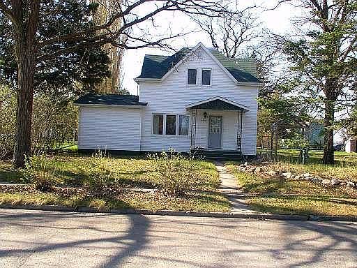 Home has many updates including all new windows, vinyl siding, outside doors, & shingles. Large kitchen with oak cabinets. Formal dining area. Brick fireplace in living room (currently not vented.) All new bath upstairs. Nice double lot with extra large double garage in back.