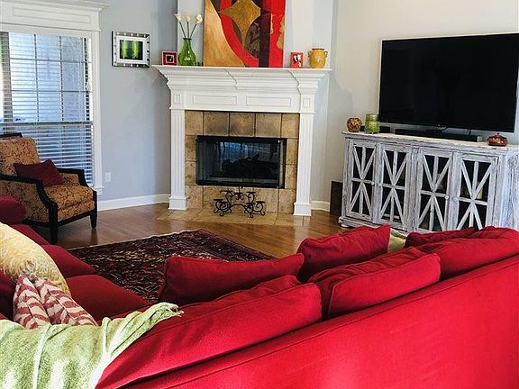 Beautiful Lynn Dickey Custom Home with 4 Beds/3 Baths amazing split floor plan. 9ft ceilings throughout! Kitchen w/hearthroom, gas cookstove, double sided fireplace to great room & granite. Split floor plan with 3 private sleeping areas!! Beautiful hardwoods & large tiles in living areas. Lots of crown molding & spacious closets. Large fenced backyard wired for surround sound on covered patio. Walking paths in front & behind house. Sprinkler & alarm systems. MUST SEE !!!