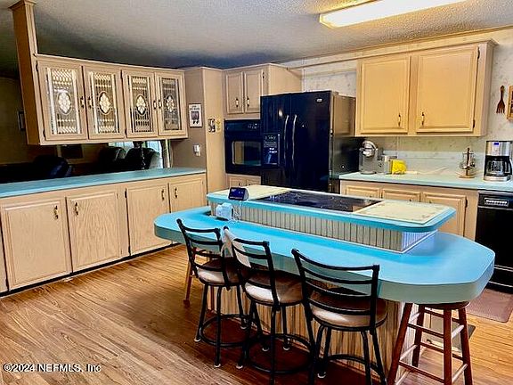 LAKE Broward access, on 1 1/2 Acre. This 1991 Manufactured home got a new metal roof in 2023, and the heat and air was updated in 2016. It has been well taken care of and has lots of Kitchen cabinetry , plus an island. The central living room is divided by a 2 sided wood burning fireplace from the dining room. There are 3 bedrooms and 2 full baths. There is attached screen rooms both front and back to sit and enjoy the spacious green lawn and there is a garage with workshop, plus attached carport and additional Tool shed for all your storage needs .Come home down Sunny lane through a beautiful canopy of trees This home has a lot to offer for the price.