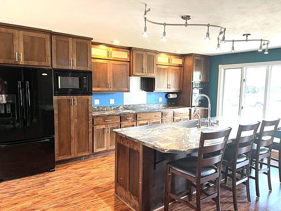 This 4 bedroom, 3 full bath home has a beautiful open concept throughout. Updated kitchen with endless storage, oversized Island, Appliances included, sitting next to the informal large dining room. Living room with gas fireplace leading to the sunken recreational room and built in bar area, along with patio doors leading to the large deck while enjoying the beautiful views of the private backyard. The lower level features large family room along with 2 bedrooms, full bathroom and utility room that houses the Geo thermal heating and cooling system. A double stall attached, heated and insulated garage along with a 14x42 outside cement pad. The backyard 14x20 insulated shed consist of a cement pad with awning great for entertaining. This property has Endless Possibilities for you to enjoy. You won’t want to miss out on this one!