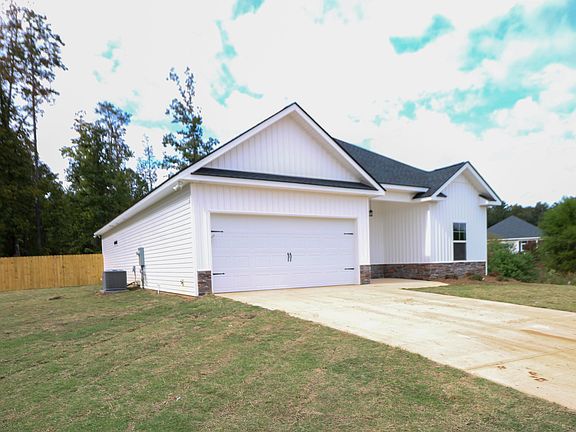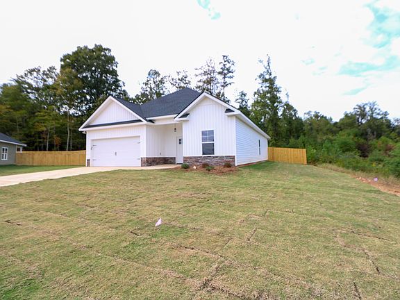 Welcome to Cottages of Blue Ridge! This is a Oakland Plan, single-level home, situated on Sutter Butte Place, offers four bedrooms, three full bathrooms, and a privacy fence, complete with all the amenities you expect from new construction. Luxury Vinyl Plank flooring graces the main living areas. The open floor plan features a spacious living area with a stunning coffered ceiling and an electric fireplace with a wood mantle. The kitchen boasts shaker cabinets, a large island with breakfast bar, granite countertops, stainless steel appliances, and tiled backsplash. The primary bedroom features a decorative box tray ceiling and a bathroom with a striking tile shower with a frameless glass shower door and a freestanding tub. Additionally, the main living space leads to a covered patio, ideal for entertaining. The tranquil, tree-lined, fenced backyard is an oasis of calm. The property is zoned for Bonaire Elementary, Bonaire Middle, and Veterans High School. The house is conveniently located minutes from ROBINS AFB and close to all your shopping needs on Hwy 96.