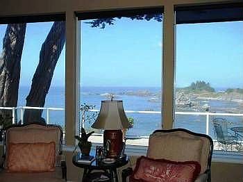 Exquisitely crafted oceanfront home w/European style & flair. Elegance in every impeccable detail. Fabulous tumbled stone, tile & hardwood floors. Plato cabinets. Complete separate guest quarters. 3,700 sf on one level. Glased in deck overlooks rocky ocean cove. Quality at every turn. Magnificent grounds w/pond.
