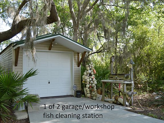 WOW .74 acres with nice tree coverage. House with two more lots for a total of almost of an acre. 2 detach garages with power. Private back yard backs up to wooded area. Open floor plan with plenty of space. Solid surface floors everywhere but bedrooms. Split floor plan. You can walk all the way around the house on paved walk way under 4 foot overhang. Attached carport for covered parking plus two detached garages. Fish cleaning station. Plenty of room to park the boat. Roof only 1 year old. You really need to see this one. Less than 10 minutes to Kings Bay Navy base. Quick easy access to I-95 and only 20 minutes from shopping in Jacksonville or Brunswick. Enjoy living in a small coastal community without the hassle for city life.