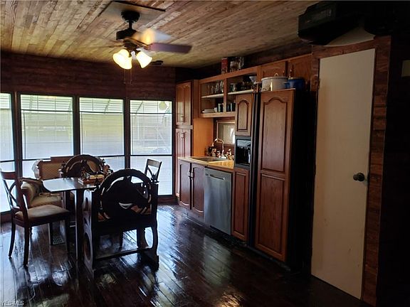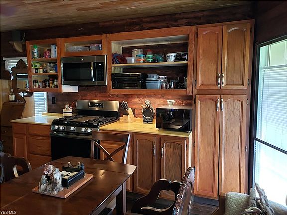 Must see it to believe it! Updated kitchen & Livingroom/carpet. 2 bed 2 bath. Don't judge a book by its cover! Espresso pine hardwood floors, oak cabinets, & hickory ceiling. Windows are in really good shape. UPDATES: NEW carpet & hardwood floors, walls and ceiling. Sealed pine countertops. Kitchen showcases modern meets the old west with style. Perfect pantry ready for supplies. Surround sound throughout & insulated very well provides economical utilities. Washer & dryer stay. **Appliances will stay if acceptable sales value is obtained. To include GE 2018 stainless steel 5 burner gas stove, GE vent less stainless steel micro. 2017 Samsung Stainless steel dishwasher & GE Profile side-by-side fridge. New kitchen sink, faucet and counters. Natural gas portable fireplace.* . MOTIVATED SELLER... ALL OFFERS WILL BE CONSIDERED. This 924 sq Ft home sits on 1,277 sq ft lot. $420.00 monthly lot rent.