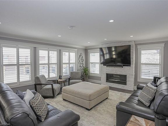 This Byron home has it all, and is like new! Expertly re-designed and renovated bungalow on generous corner lot in desirable Warbler Woods. Enter into the spacious foyer into the bright and expansive open concept main floor. The main floor has hardwood flooring throughout and features kitchen with granite counter tops, island with breakfast bar, built in appliances, skylights, and bay window; great room with large windows, deck access and gas fireplace; formal dining room; mudroom with built in benches and cubbies; private master bedroom in its own wing with double his and her walk-in closets and 5 piece ensuite with stand alone tub, double sinks, granite countertops, and tiled shower with glass enclosure; front wing has 2 additional bedrooms, 4-piece main bathroom, and convenient main floor laundry room. The fully finished lower level is perfect for a family hangout or entertaining with games area, family room, 2-piece bath, 4th bedroom and still has plenty of unfinished storage space. The professionally landscaped yard wraps around the entire house and includes new deck with access from the great room. Bonus oversized garage and close to walking trails. Updates include: A/C 2017, Garage door 2018, new cement driveway, path and front porch 2020, upgraded in-ground wifi sprinkler system 2020, shed 2020, roof 2013, all windows and exterior doors 2017, furnace 2004 and recently serviced.