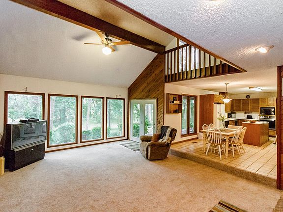 This 3 bedroom, 2 bath home sits on 5 wooded acres in the desirable Southern Hill Estates outside of Coffeyville. Vaulted ceilings and a wall of windows provide an open, airy feel in the living area, and a grand, wood burning fireplace (with blower) heats the large open space on cold winter nights. The home features spacious bedrooms and an office area that could be converted into another bedroom, if necessary. The entire upstairs of this home could be your master retreat! The large bedroom has an attached bathroom with walk-in closet and jacuzzi tub. You will love relaxing and viewing wildlife on the upper level deck off the master bedroom. There is even a good-sized sunroom off the kitchen that is perfect for growing an herb garden. With a little cosmetic updating, you could make this house your own! Call for a showing today.